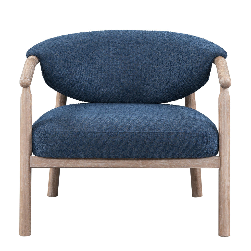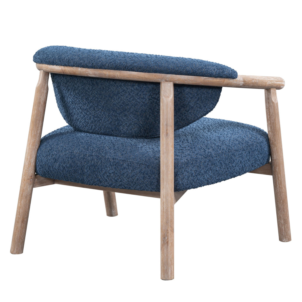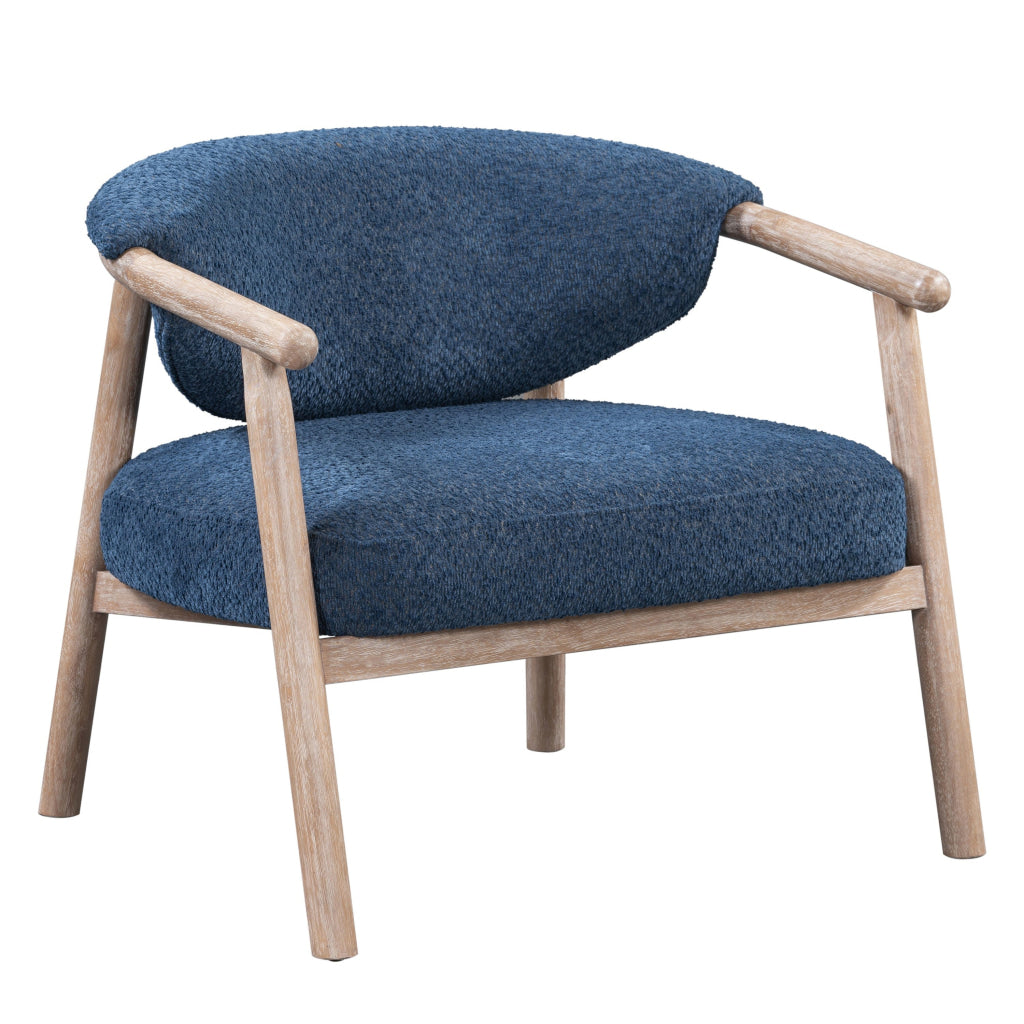 Embrace comfort, style, and longevity with our Remy accent chair, a perfect addition to any home. The curved back and plush padding ensure a premium seating experience, while the timeless design exudes a vintage allure. It boasts textured blue polyester upholstery seamlessly paired with a whitewashed sturdy solid ash wood frame for elegant appeal. Check out our Remy collection for more.