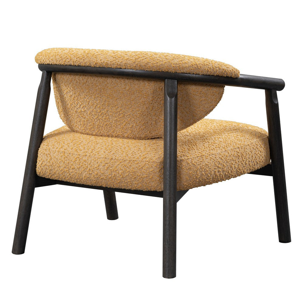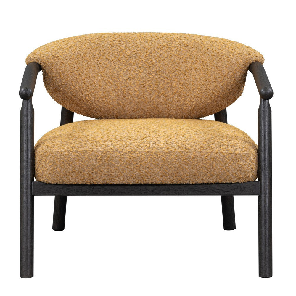 Embrace comfort, style, and longevity with our Remy accent chair, a perfect addition to any home. The curved back and plush padding ensure a premium seating experience, while the timeless design exudes a vintage allure. It boasts textured gold polyester upholstery seamlessly paired with a dark brown sturdy solid ash wood frame for elegant appeal. Check out our Remy collection for more.