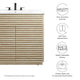 Tap into mid-century aesthetics with the Render Vanity. This slatted 36 inch bathroom vanity features a durable particleboard frame with smooth laminate and a sturdy plinth base. It includes an adjustable storage shelf behind two soft-close hinged doors, offering ample room for plumbing and storage. The ceramic basin and integrated countertop with three 8" centerset faucet holes create sleek lines and a crisp design for an edgy style that meets your needs. Boasting a mid-century modern style, this 36" bathroom vanity with sink combo features a solid construction with a pleasing look and practical functionality. Assembly required, and ready for fixtures of your choosing (not included).