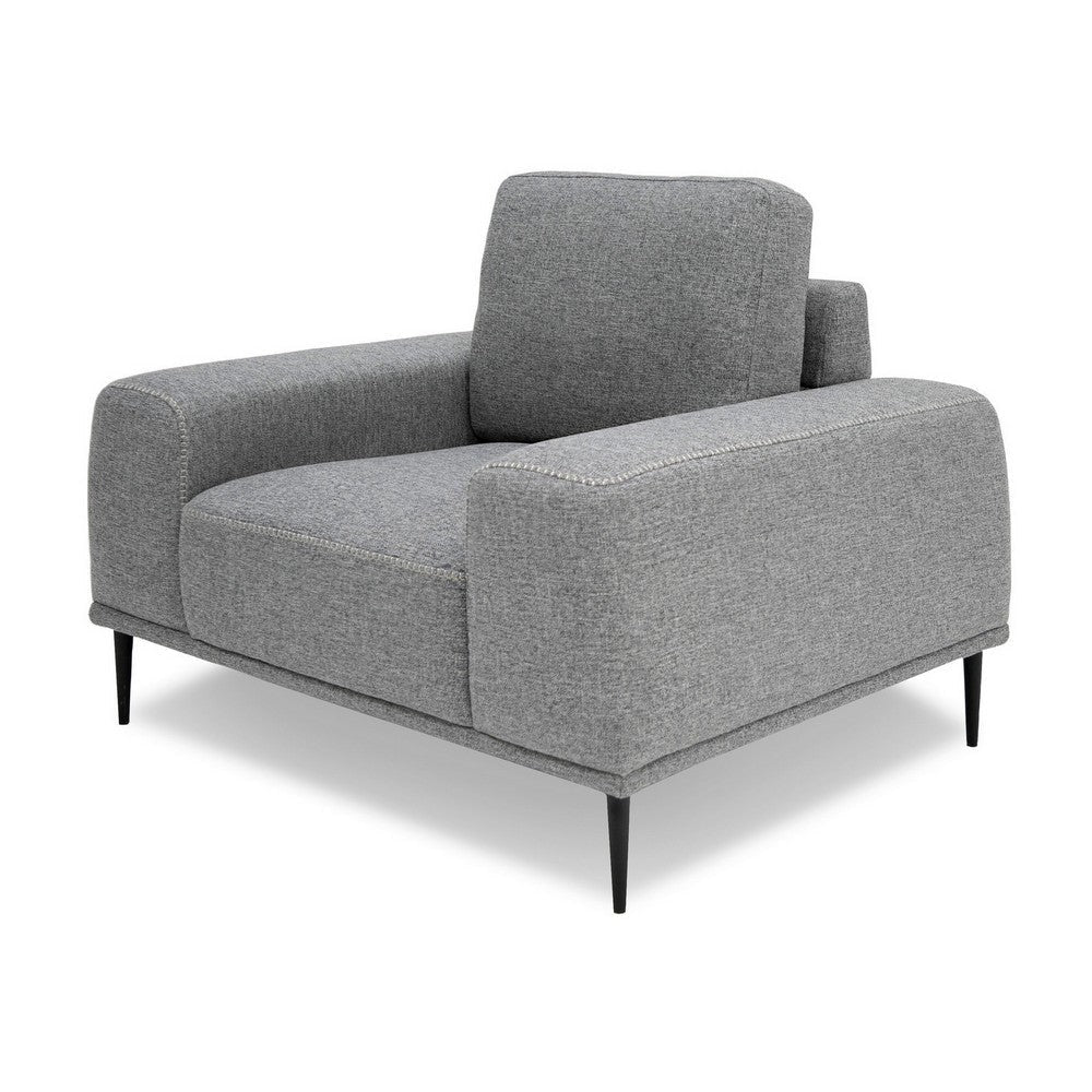 Unwind in style with this contemporary accent chair. The sturdy wood frame with black metal legs offers lasting support, while the plush gray polyester upholstery invites you to relax. Further, the removable back cushions provide customizable comfort. Check out our Reno Zico collection for more options.