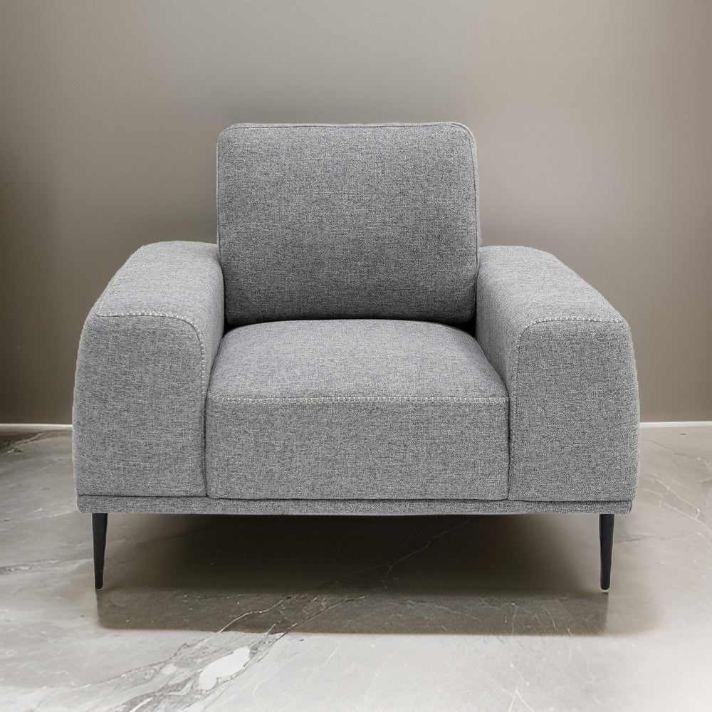 Reno Zica 44 Inch Accent Chair, Gray Polyester, Black Metal Legs, Wood By Casagear Home