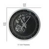 Reny 23 Inch Wall Clock, Decorative Gear Design, Round, Silver, Black Iron By Casagear Home