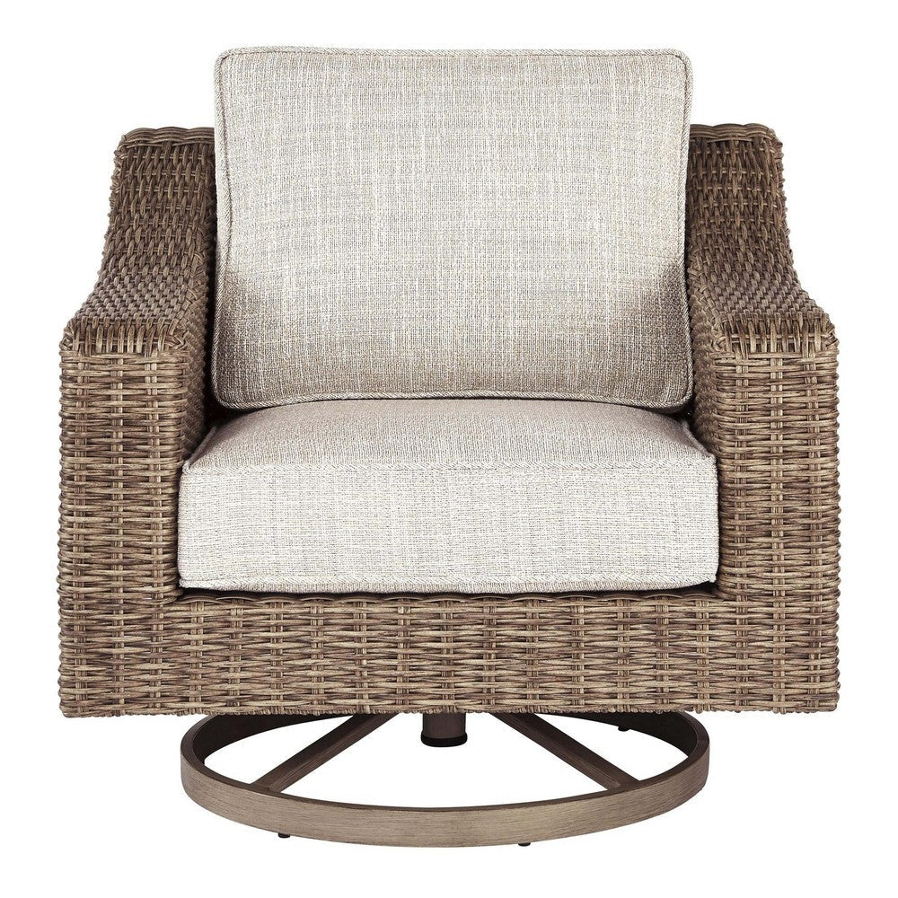 Swivel Chair | Resin Wicker | Cushioned Seat | Brown & Beige