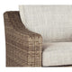 Combine comfort and farmhouse style with the inclusion of this sophisticated swivel chair. It features an aluminum frame construction with woven resin wicker, incorporating a fabric upholstered seat and backrest for additional comfort. It can rotate 360 degrees and is weather and rust resistant.