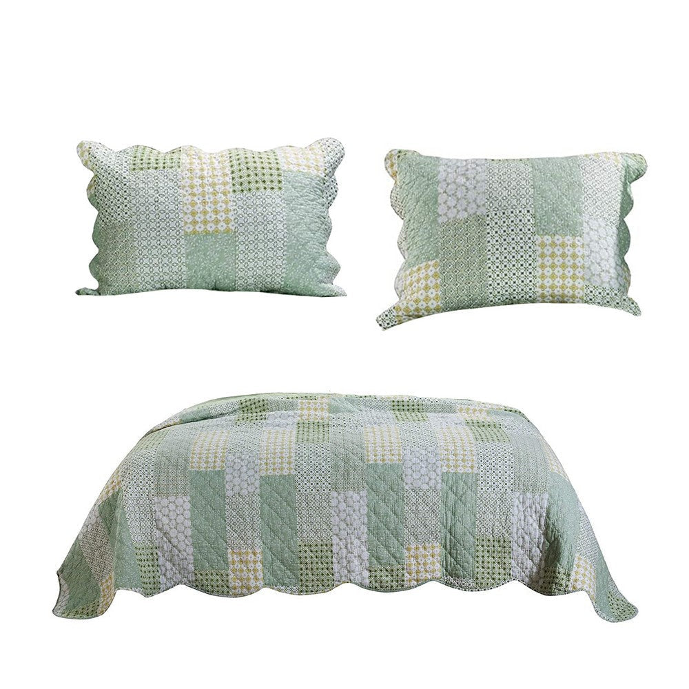 Queen Quilt Set | Reversible Fabric | Geometric Pattern Motifs | Green