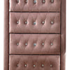 • Upholstered in a gorgeous and soft polyester fabric, this tall chest dresser is a great way to keep your clothes and valuables organized neatly in your master or guest bedroom. The spacious countertop and four drawers with metal extension gliding rails make this chest an invaluable addition to your interior decor for years to come. Check out our Rex collection to complete the set.