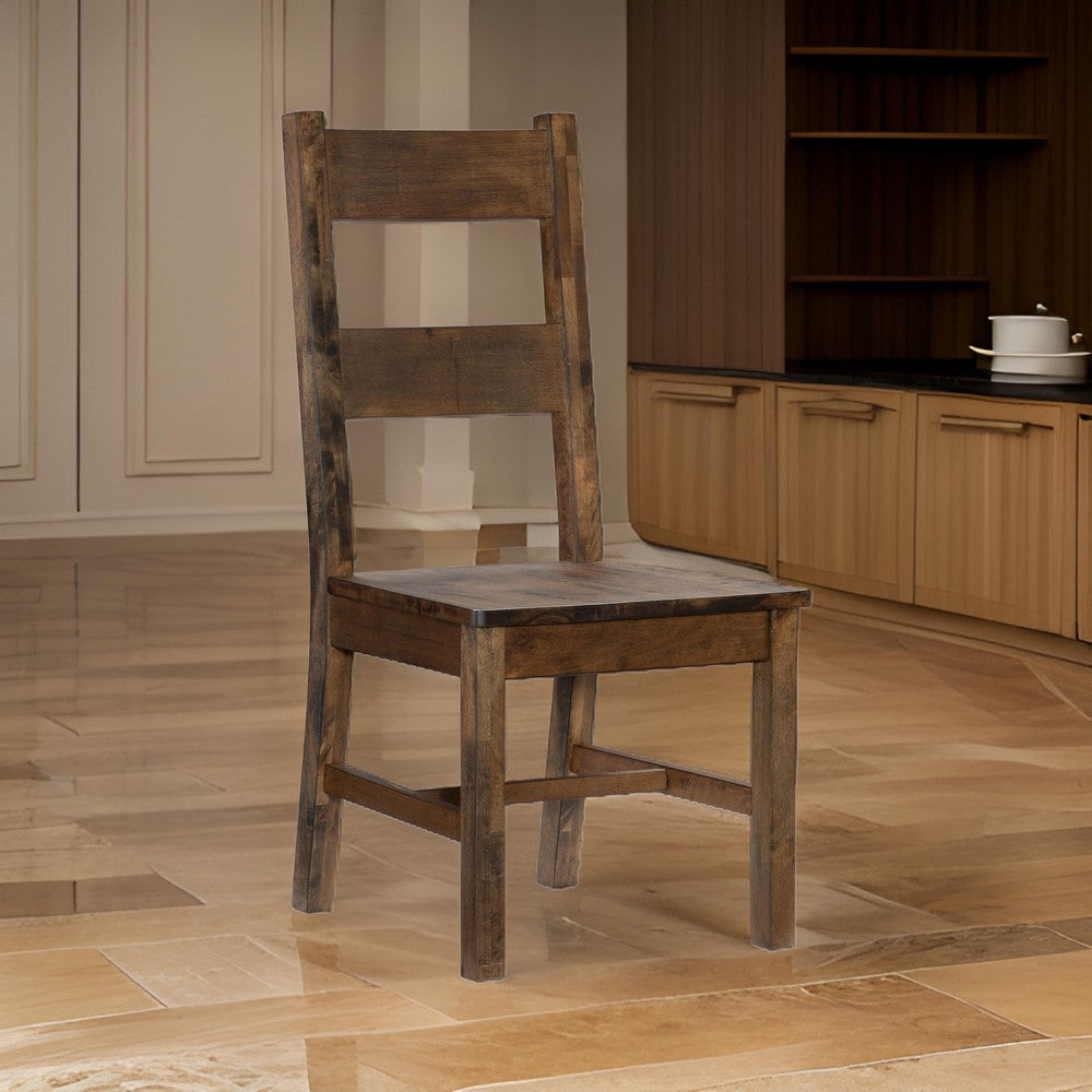 Bring home this side dining chair to adorn it with a sense of classic comfort and modern style. This versatile piece, made from a sturdy solid rubberwood frame with a warm burnished brown finish, features a classic ladder back design. Its minimalistic look complements a variety of modern decor themes with ease. Check out our Rick collection for more options.