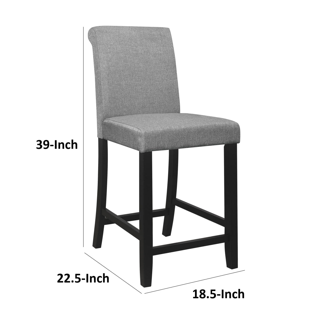 Rina 24 Inch Counter Height Chair, Gray Fabric, Black Wood, Set of 2 By Casagear Home