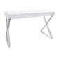 Rix 47 Inch Office Desk, White Wood Top, 2 Drawers, X Polished Steel Legs By Casagear Home