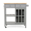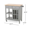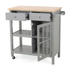 Description:This functional kitchen bar cart features a gray cabinet with a glass door and two drawers for ample storage. A wood countertop provides a durable workspace, while metal handles add a modern touch. The cart's casters allow for easy mobility, making it a practical and stylish addition to any kitchen. Check out our Shine collection for more options.