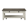 Modern meets functional with this chic cocktail coffee table. It is made from durable rubberwood in classic white and brown finish and exudes sophisticated charm. Two drawers with smooth gliding tracks offer discreet storage atop its spacious lower display shelf. Sleek black knobs accentuate the design, with convenient caster wheels for mobility. Check out our Rome collection for more like this.
