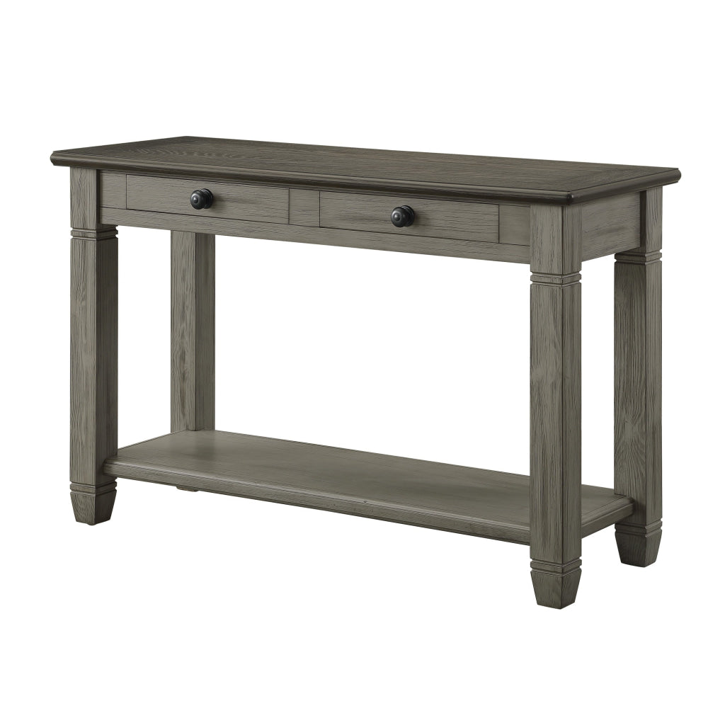 Rome 48 Inch Sofa Table, Rectangular, 2 Drawers, Brown, Gray, Solid Wood By Casagear Home