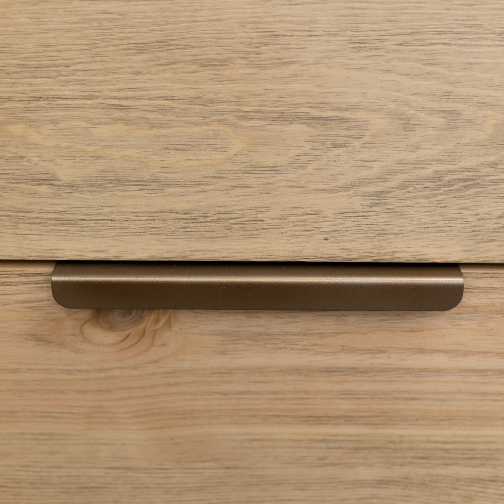 Rosy Nightstand, 2 Drawers, Bronze Metal Handles, Brown Solid Pine Wood By Casagear Home