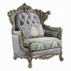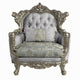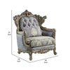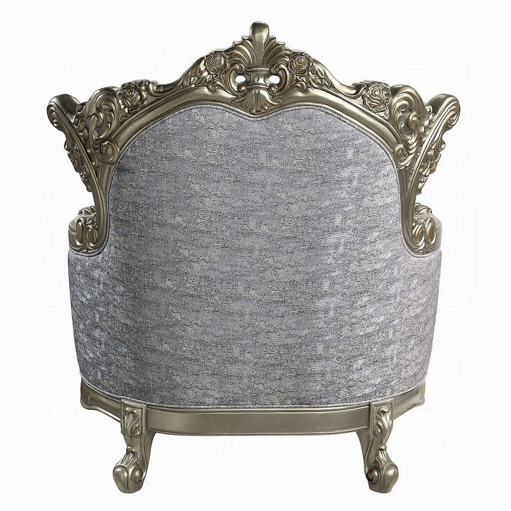 Royale Accent Chair, 1 Pillow, Gray Fabric, Antique Bronze Wood Frame