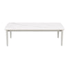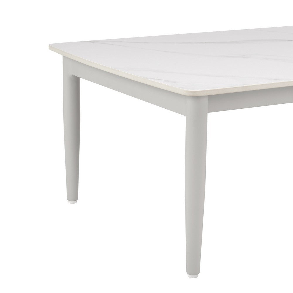 Give your patio space a luxurious feel with this outdoor coffee table, bring a blend of contemporary style and lasting durability. Made with a sintered stone top, it boasts resistance to water, stains, scratches, heat, and chemicals. Its white powder-coated legs offer sturdy support and add a touch of modern elegance to the overall design. Check out our Rue collection for matching set pieces.