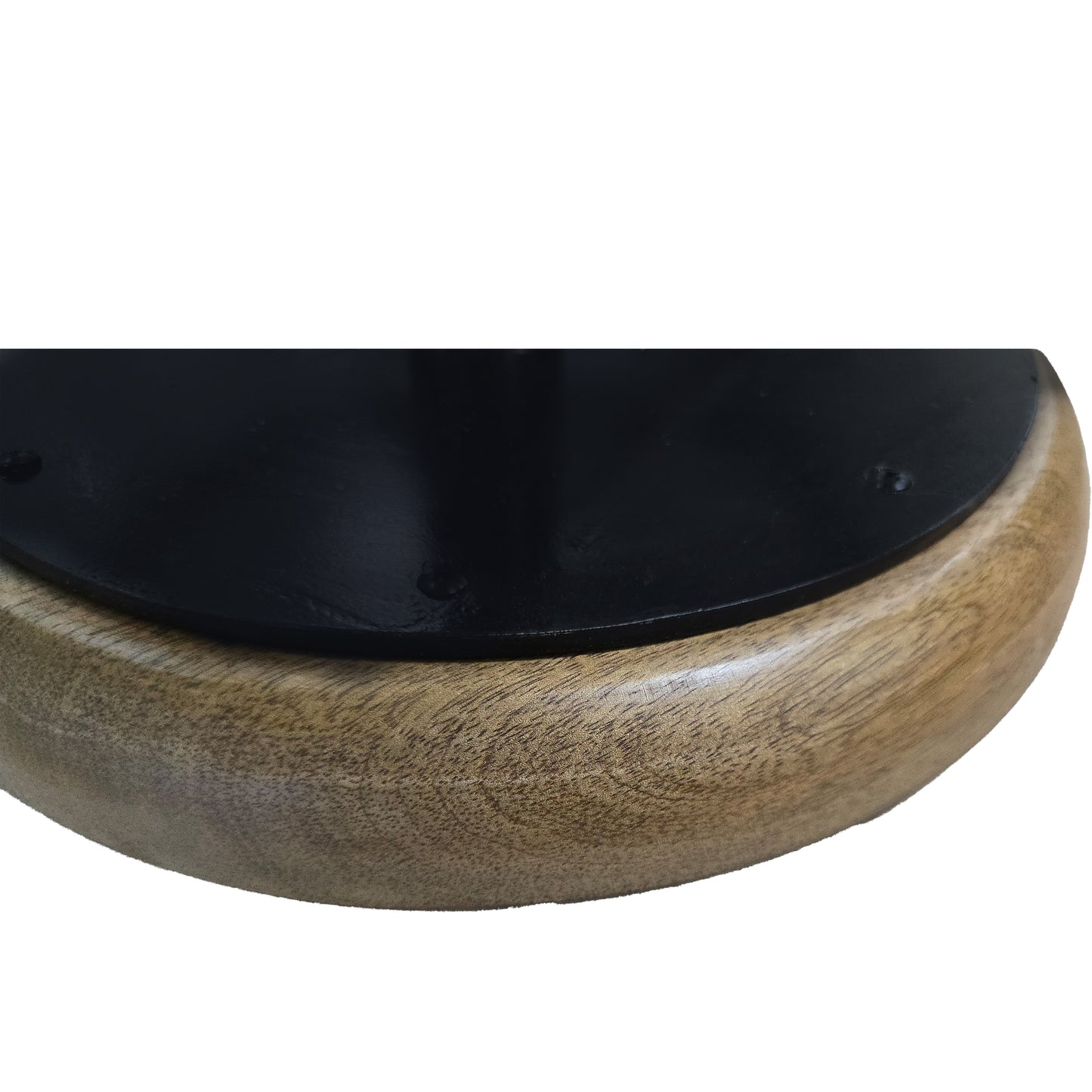 Discover our artfully handcrafted counter stool, where rustic charm meets industrial flair, setting the stage for a warm and inviting home. The black powder-coated iron base features a pronged leg design augmented by a must-have circular footrest, while the round seat is crafted from mango wood, displaying subtle yet elegant natural wood grain details. Experience unparalleled comfort with its full 360-degree swivel feature, transforming every turn into a smooth, comforting interaction. Importantly, the floor protectors along the bottom prevent damaging scratches or abrasions and keep the stool stationary. The absence of a backrest gives this piece a minimalist edge, seamlessly blending into any space without overwhelming it. Whether gracing your kitchen Island or supplementing your counter height dining area, this stool boasts superb versatility.