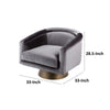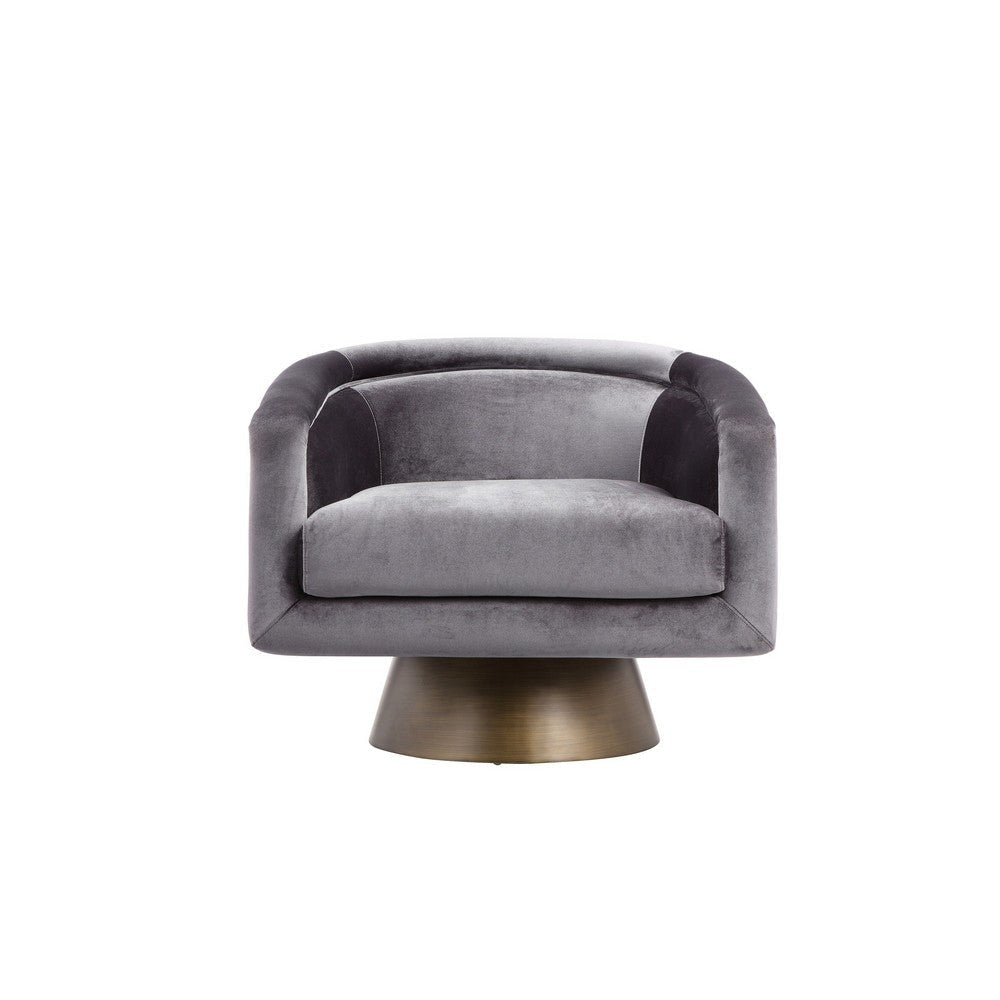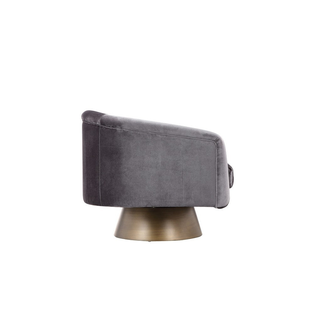 Description:Experience the epitome of relaxation and luxury with every swivel when you choose our Rxa swivel lounge chair. It is meticulously crafted and boasts a barrel back design adorned with sleek gray velvet upholstery, exuding luxury and sophistication. The generous padding over the seat, back, and arms provides superb support, making it a perfect lounging spot. Check out our Rxa collection for more.