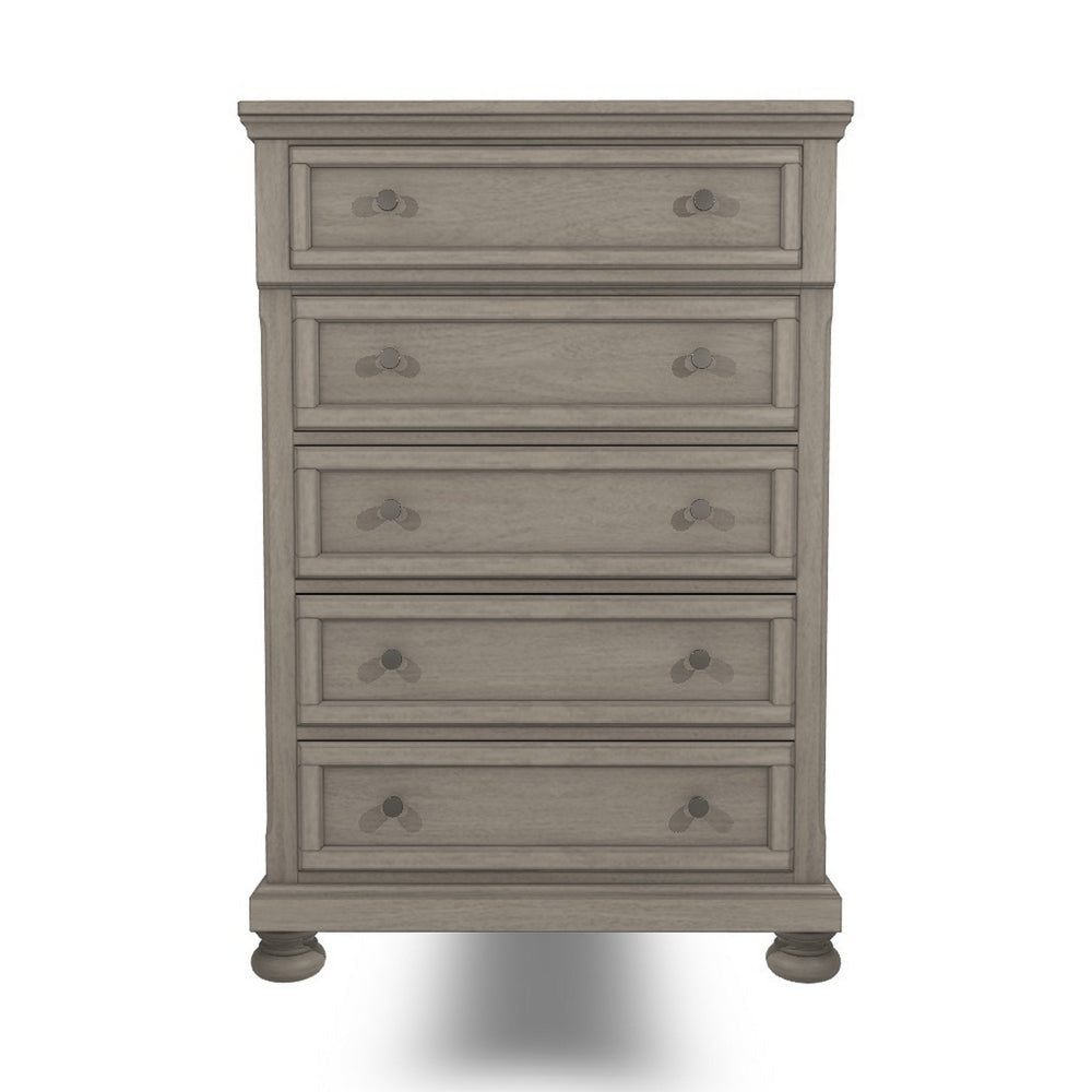 Ashley Ryno Tall Dresser Chest | 5 Drawer | Tray | Silver Round Knobs | Gray