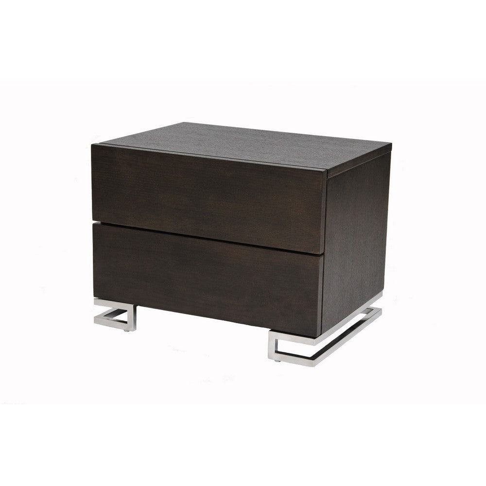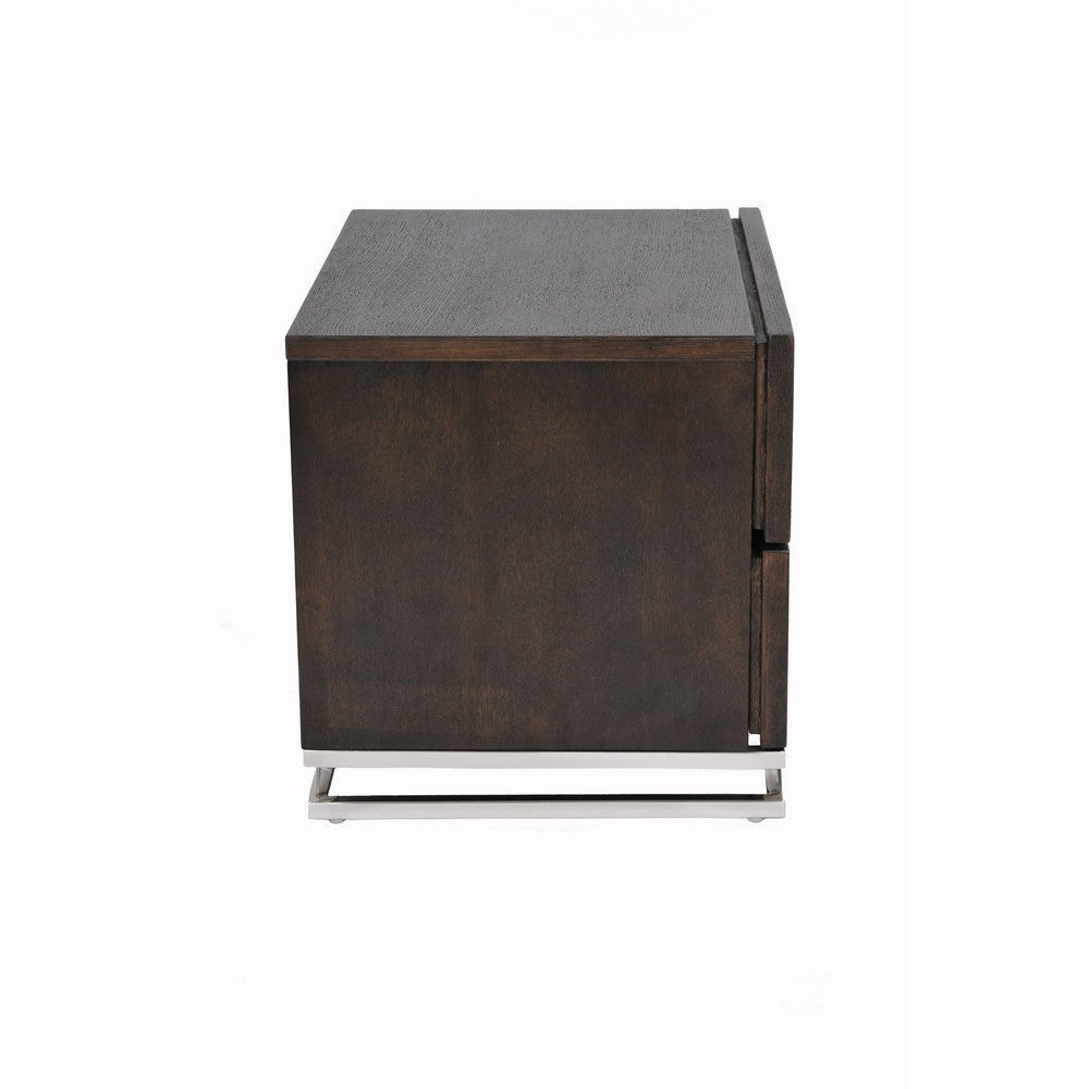 Sam 20 Inch Nightstand, 2 Drawers, Espresso Brown, High Polished Metal Legs By Casagear Home