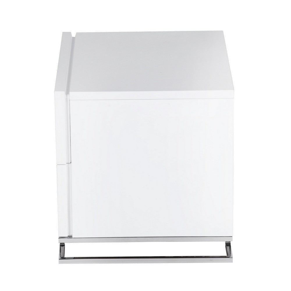 Sam 20 Inch Nightstand, 2 Drawers, White Wood, High Polished Metal Legs By Casagear Home