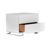 Modernize your space with our Rix side end table. Its brilliant white rectangular wood top with high-polish X-shaped steel legs gives it a sleek look. The wood and metal frame ensures strength, while the pull-out drawer offers hidden storage. It can also be used as a side table or nightstand. Check out our Rix collection for more color and pairing options.