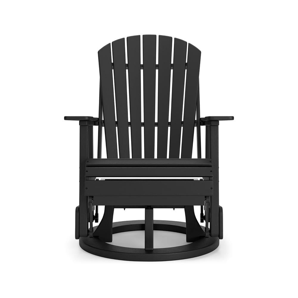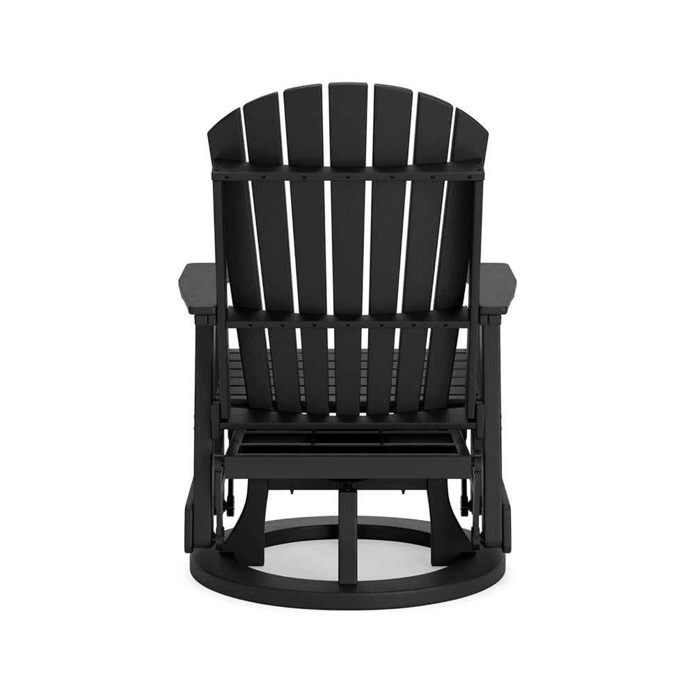 Description:Crafted from sturdy, high-density polyethylene HDPE in a black finish, this outdoor swivel glider chair embodies timeless elegance and durability. Its slatted design, featuring a gracefully curved top, combines classic aesthetics with modern functionality. Reminiscent of the iconic Adirondack shape, this chair offers unparalleled comfort and relaxation. Check out our Sami collection for more.
