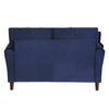 Invite a touch of luxury into your living room with this blue velvet upholstered loveseat. Its solid wood frame ensures lasting comfort and support. Further, the combination of plush fabric, flared arms, and stitch tufting creates a sophisticated atmosphere. Check out our Sarah collection for more options.