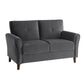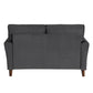 Invite a touch of luxury into your living room with this gray velvet upholstered loveseat. Its solid wood frame ensures lasting comfort and support. Further, the combination of plush fabric, flared arms, and stitch tufting creates a sophisticated atmosphere. Check out our Sarah collection for more options.
