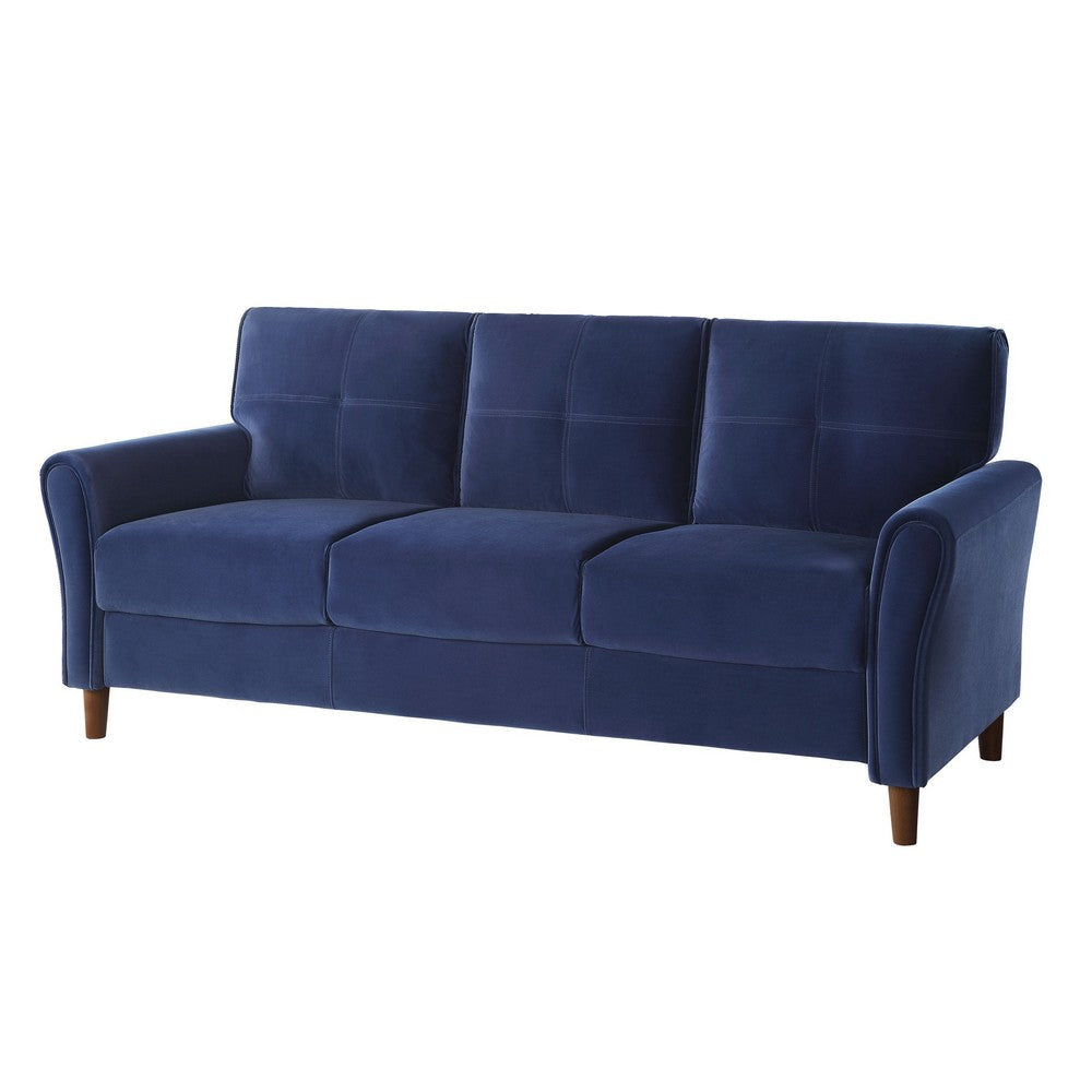 Sarah 80 Inch Sofa, Blue Velvet, Stitch Tufting, Reversible Cushions By Casagear Home