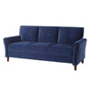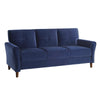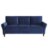 This stunning blue velvet upholstered sofa will make your living room the envy of your guests. Its high-density cushions and solid wood frame ensure lasting comfort. The rich texture, flared arms, and stitch tufting create a modern aesthetic, while the back cushions and high-density foam offer timeless comfort. Check out our Sarah collection for more options.