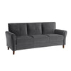 This stunning gray velvet upholstered sofa will make your living room the envy of your guests. Its high-density cushions and solid wood frame ensure lasting comfort. The rich texture, flared arms, and stitch tufting create a modern aesthetic, while the back cushions and high-density foam offer timeless comfort. Check out our Sarah collection for more options.