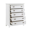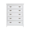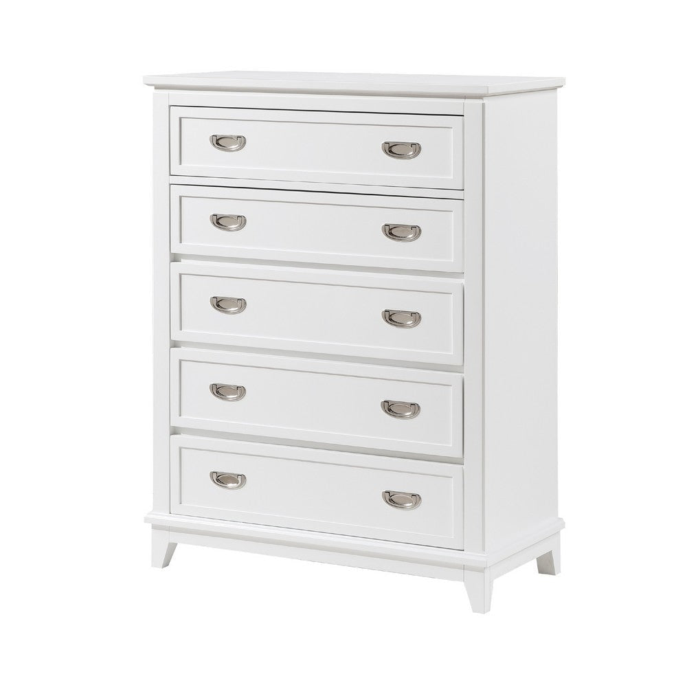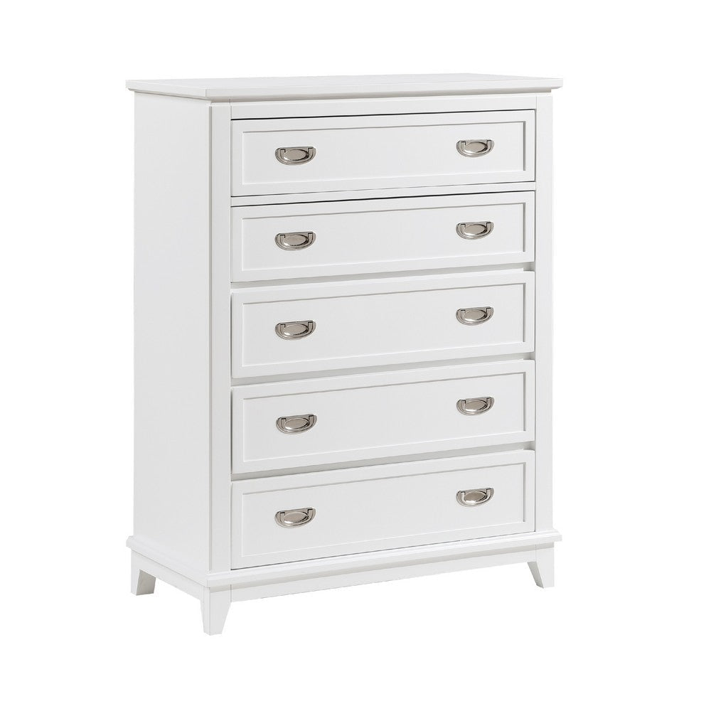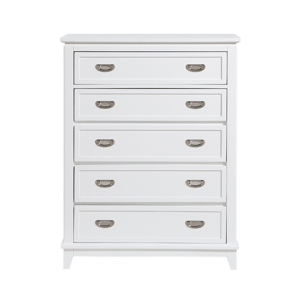 Sely Tall Dresser Chest | 5 Drawers | White Wood | Nickel Ring Handles