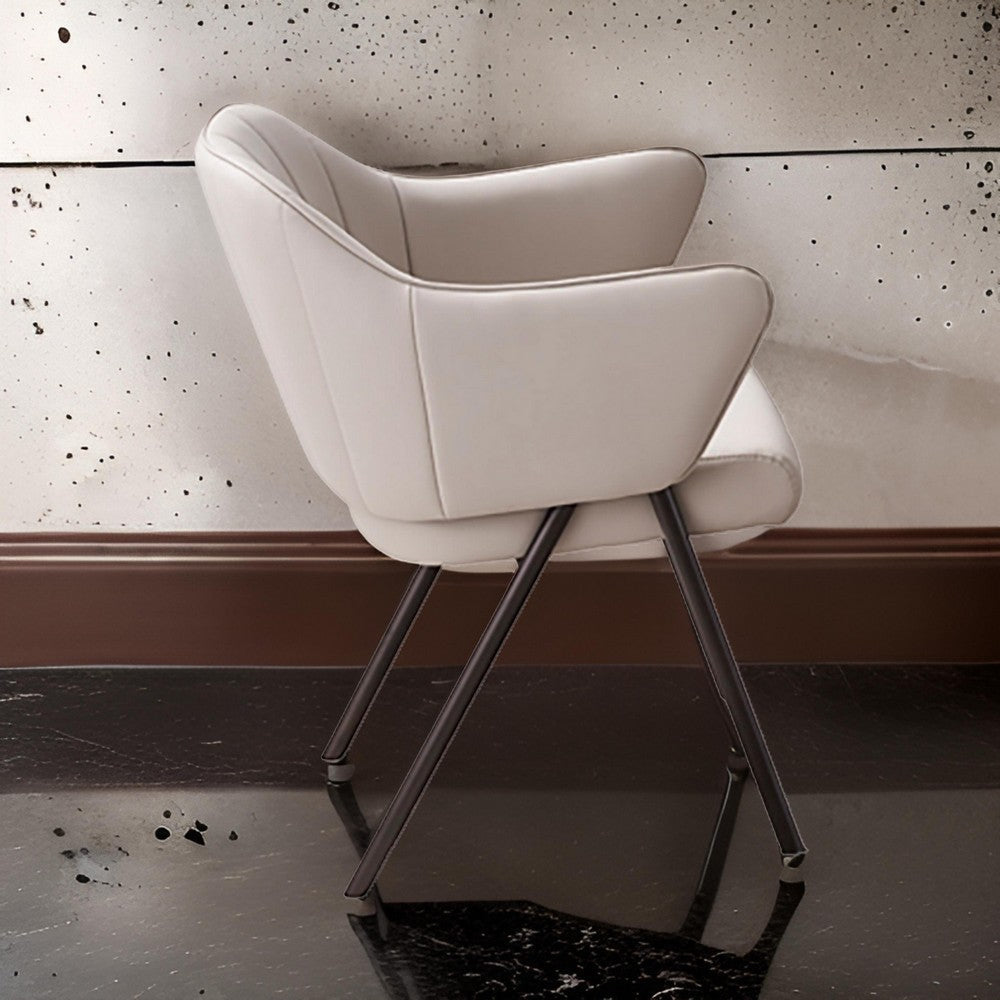 Our set of two Sem taupe dining chairs gives a delicate touch of elegance to any dining room decor. These chairs have sturdy, modern style angled legs which provide balance and long lasting durability. The streamlined silhouette and stunning channel tufted details lend a refined and sophisticated appeal to your dining room setup. Check out our Sem collection for more matching options.
