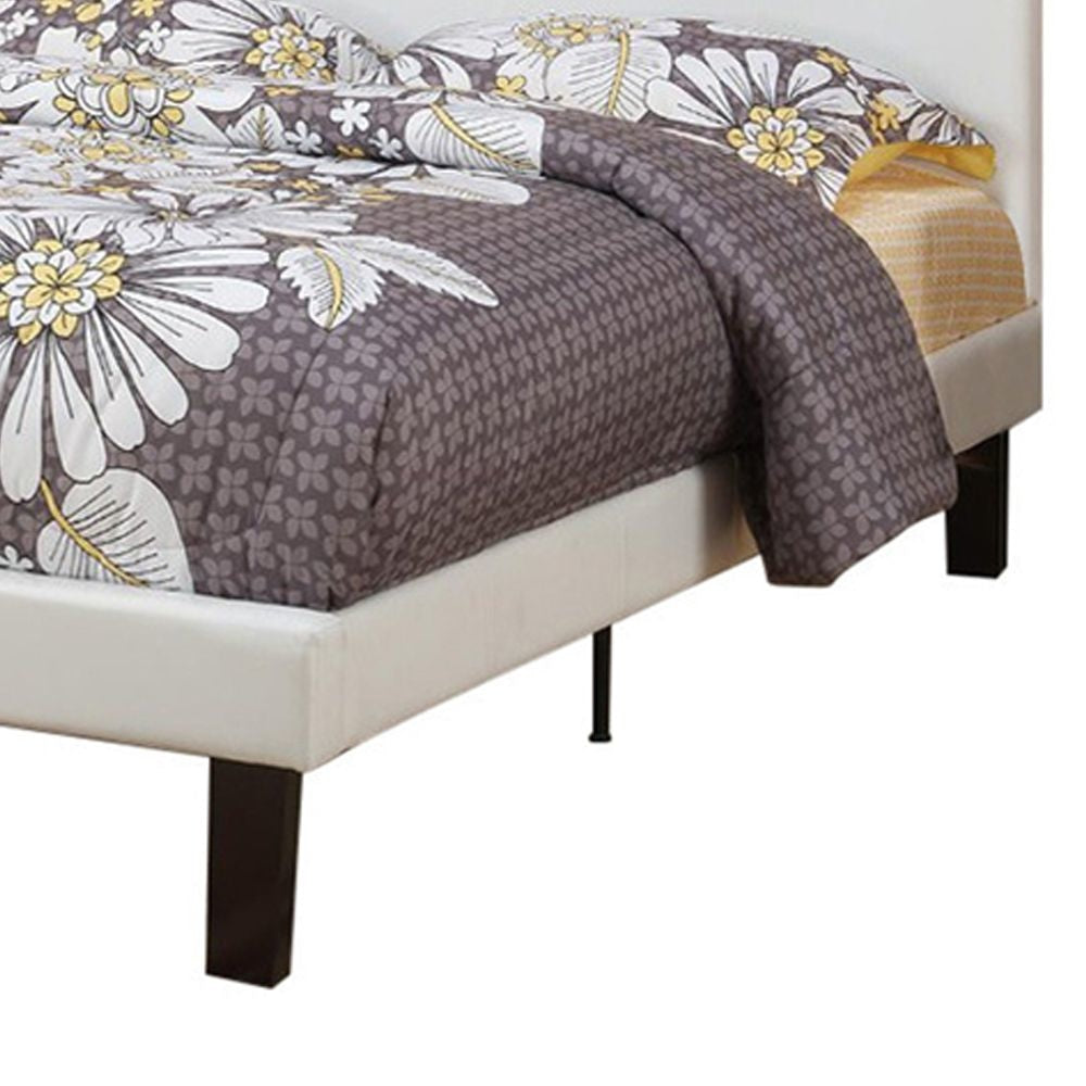 Wrapped in plain white faux leather, this contemporary wooden bed frame is graced with light square shaped stitching from top to bottom. Its design and patterns flows as a single unit make it suitable for a modern and contemporary bedroom d?cor. It does not include any other featured product other than a Bed Frame. Bed Frame Dimensions: HB 36"H / FB 13" H