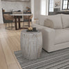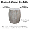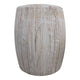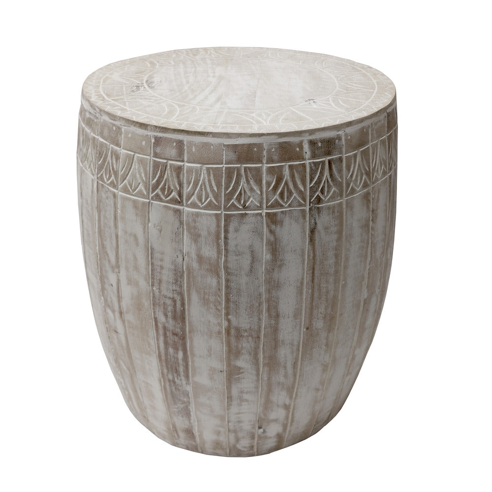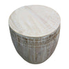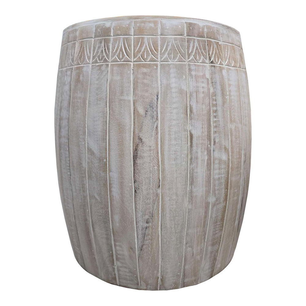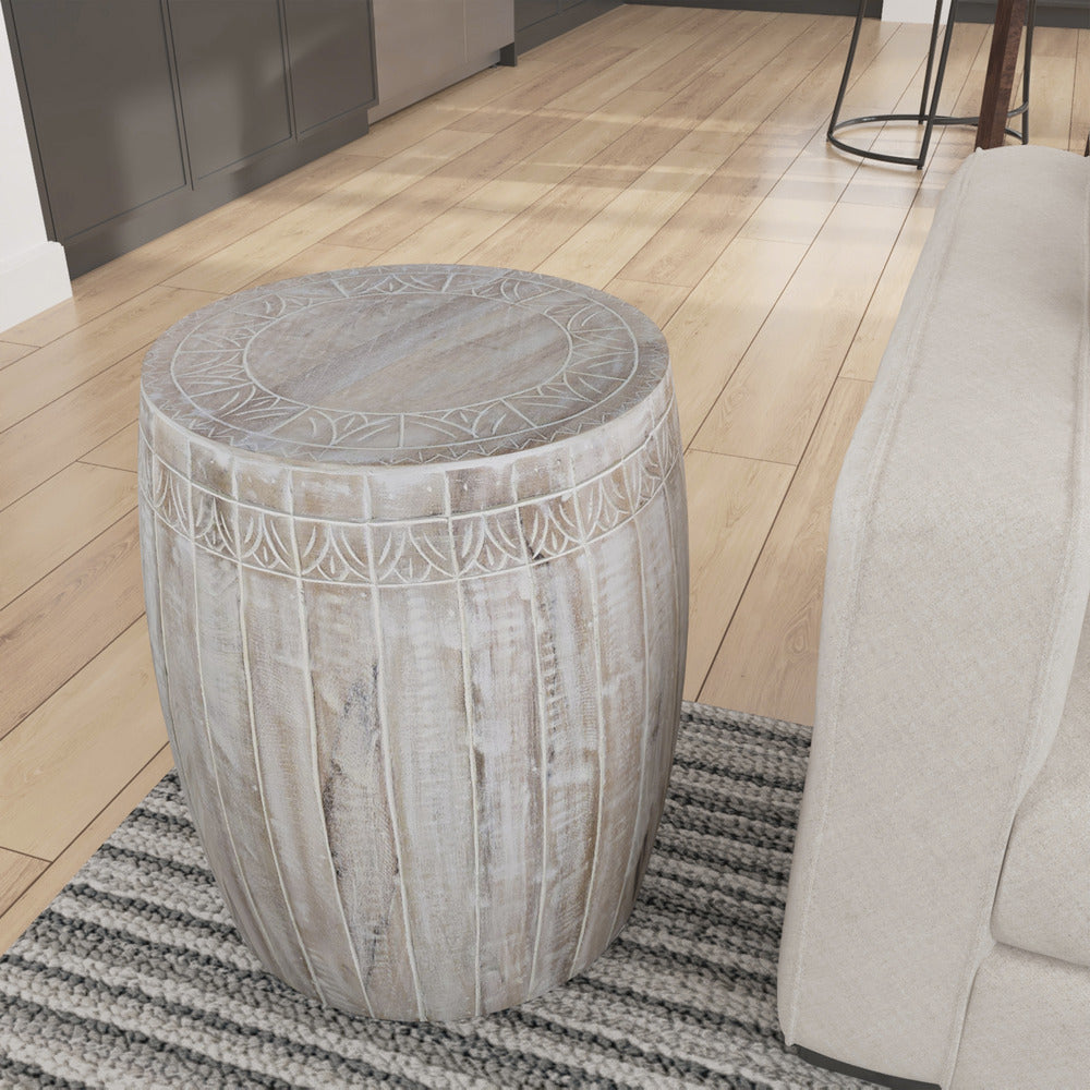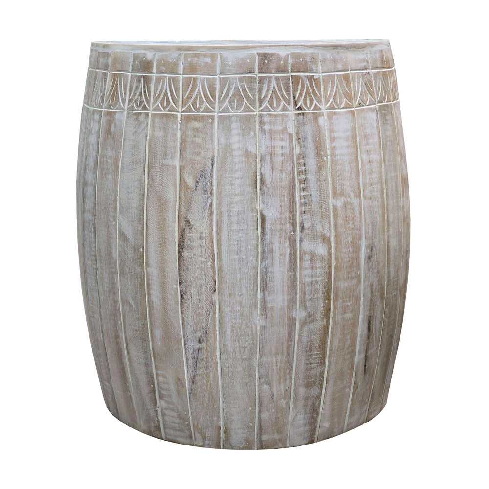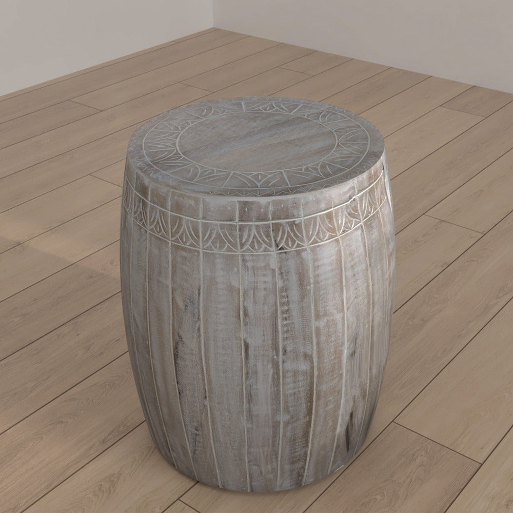 Transform your living space with this meticulously handcrafted Serenity Barre side end table, designed to be a striking accent piece in any room. Expertly made from high-quality mango wood, renowned for its remarkable strength, density, and enduring durability. The unique drum-shaped design adds a dynamic and vivid touch to your decor, with warm, rich tones that effortlessly complement a variety of interior styles. The smooth, round top of the table provides the perfect surface for placing a lamp, drinks, or other sofa-side essentials, ensuring everything you need is conveniently within arm's reach. Its intricate carvings and fully unique wood grain patterns highlight the natural beauty while making the piece a work of art. It exudes an undeniable sense of personality and confidence, enhancing the overall ambiance of any space. Whether placed beside your sofa or used as a standalone accent piece, this side table brings charm and sophistication to your home with its timeless design and exceptional craftsmanship.