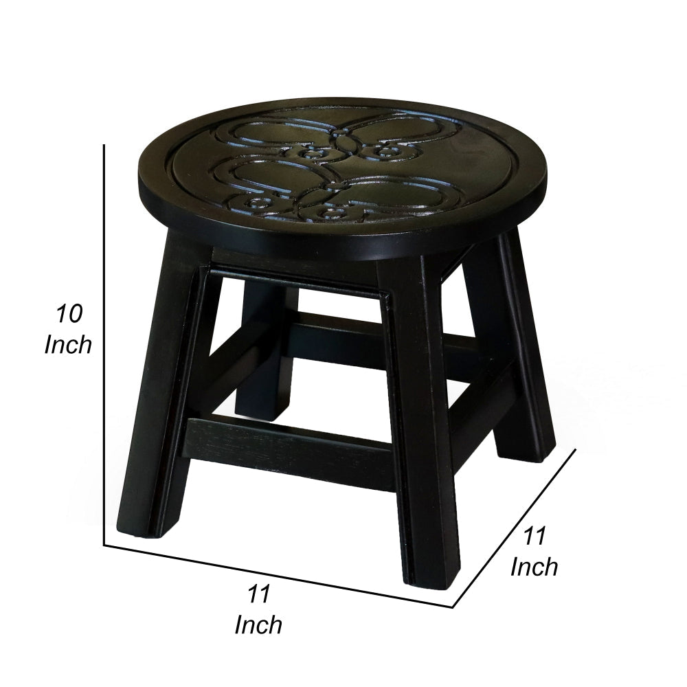 Sidi 11 Inch Step Stool Footrest, Wood Butterfly Print, Round, Dark Brown By Casagear Home