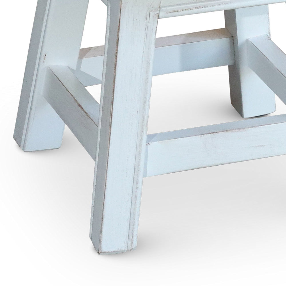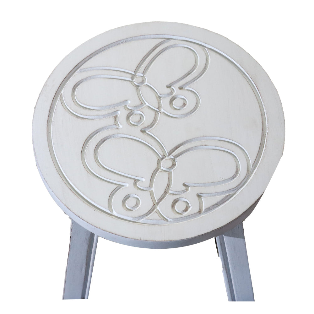 This single step stool exhibits both charm and utility with its thoughtful design in antique white finish. The butterfly carved design on its round top adds a touch of intricate elegance, transforming a simple functional piece into a decorative accent. The interconnected legs ensure stability, making it a reliable choice for slightly elevated surfaces. Check out our Sidi collection for more.