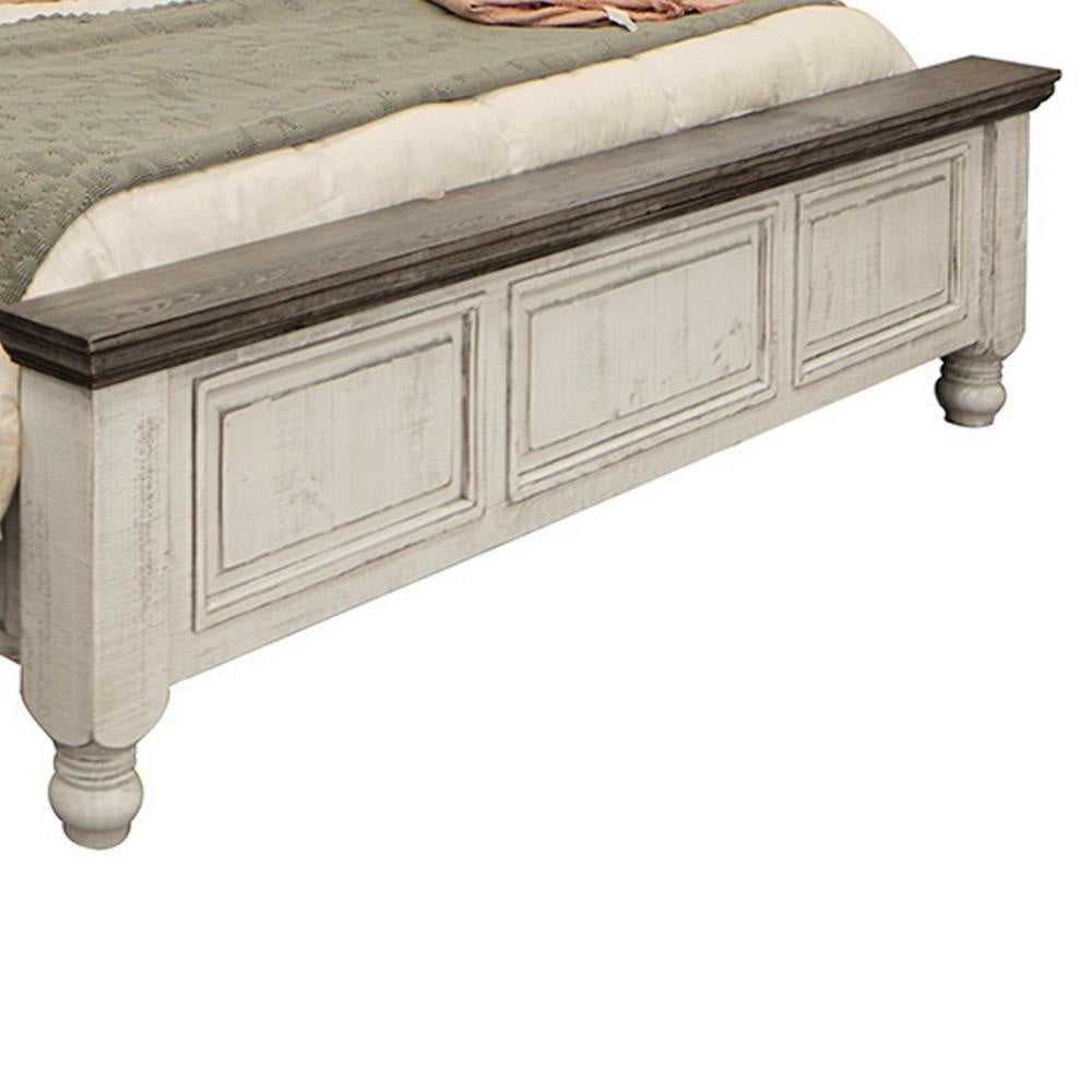 Sim Queen Size Bed, Farmhouse Turned Headboard, Gray Ivory White Pine Wood By Casagear Home