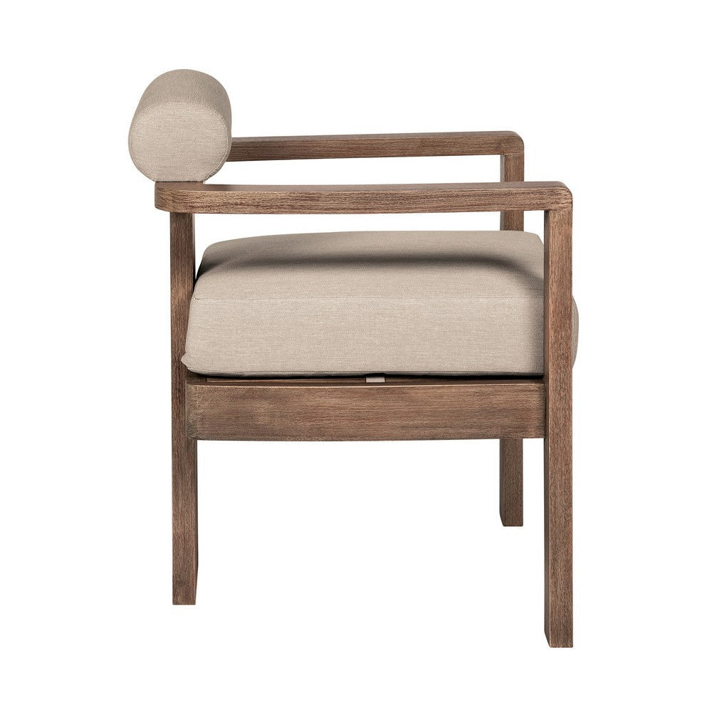 Sol 25 Inch Outdoor Patio Dining Chair, Brown Wood, Beige Olefin Cushions By Casagear Home