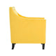 Make your living room as comfortable as ever when you bring home our Soma accent armchair, upholstered in yellow velvet. Its black finished solid wood legs add a touch of warmth and aplomb. Meanwhile, the plush backrest with comfortable armrests, button tufting, and gorgeous nailhead trim all bring visual appeal and a charming silhouette to this piece. Check out our Soma collection for more.