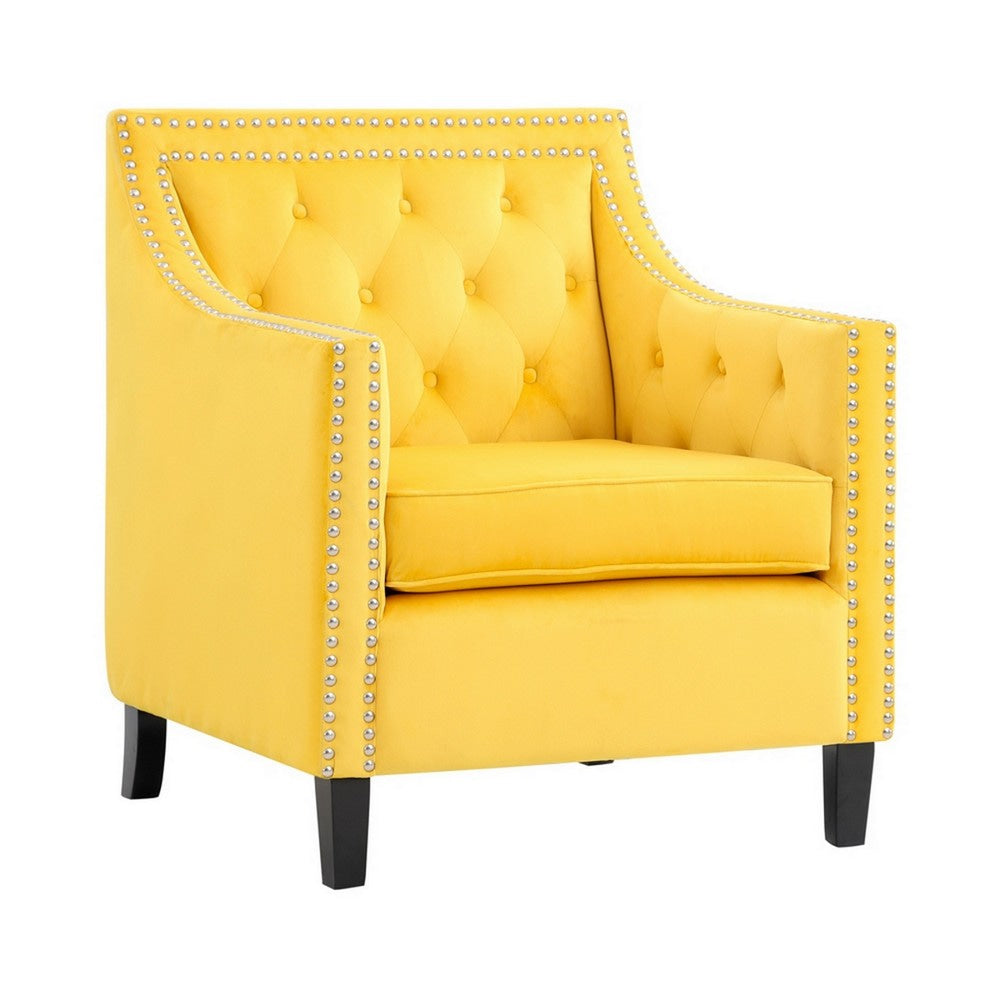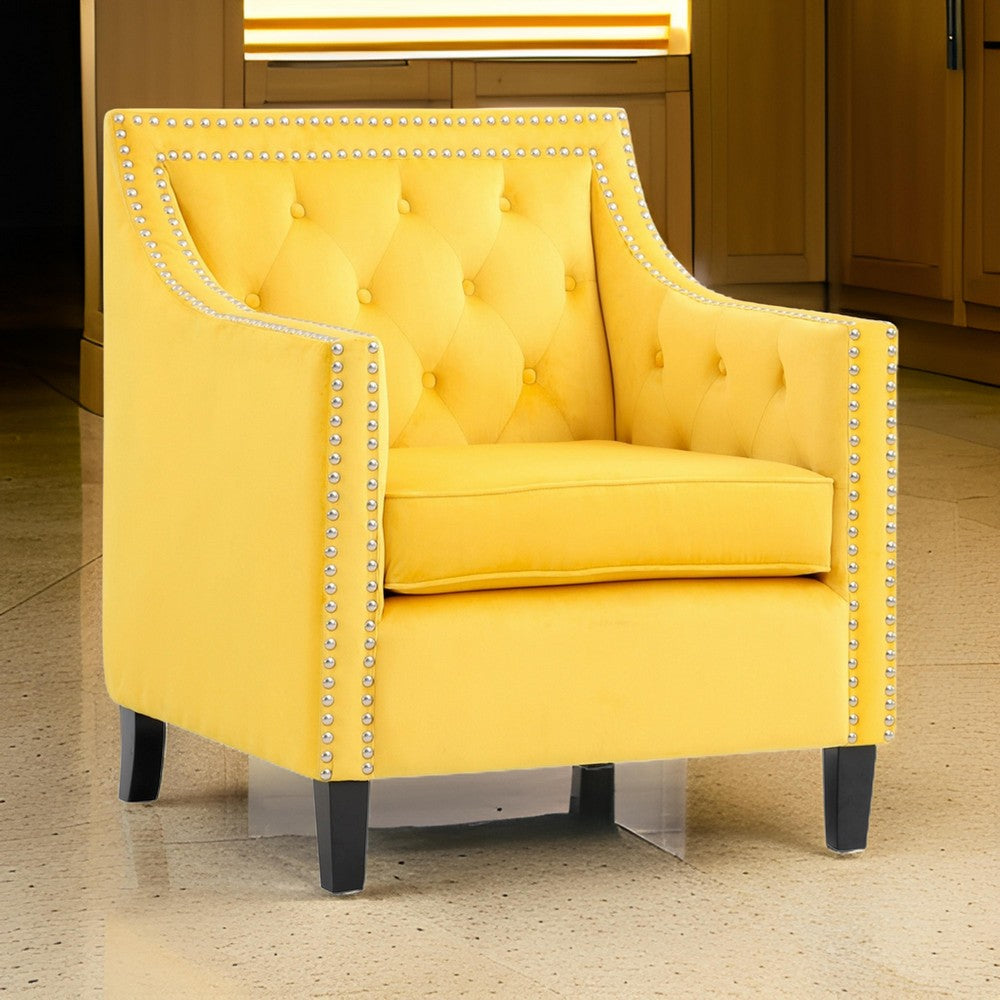 Soma 31 Inch Accent Armchair, Button Tufted Yellow Velvet, Nailhead Trim By Casagear Home