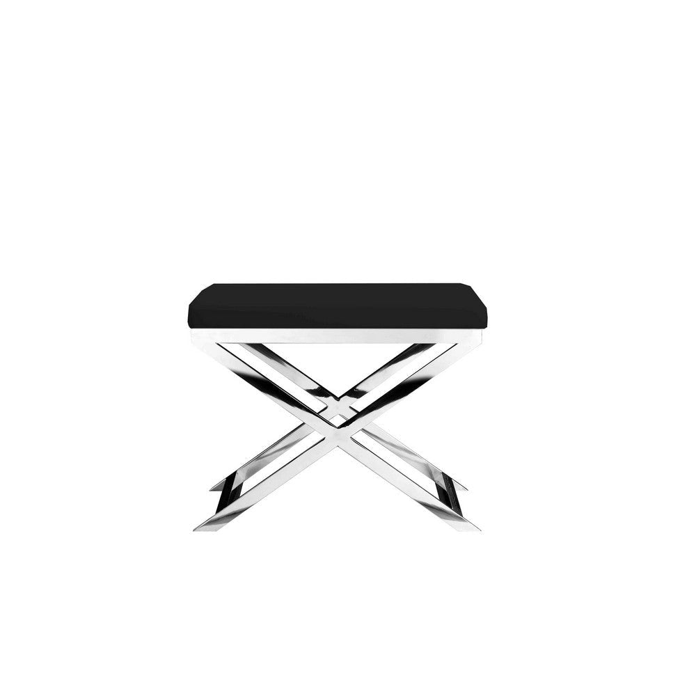 Elevate your seating arrangement with this sleek and versatile accent stool ottoman. Crafted from durable metal in a polished chrome finish, this piece exudes contemporary flair while ensuring long-lasting durability. The black polyurethane cushioned seat provides comfort and contrast. Its X-shaped base adds a modern touch and offers sturdy support. Check out our Sovi collection for more colors.