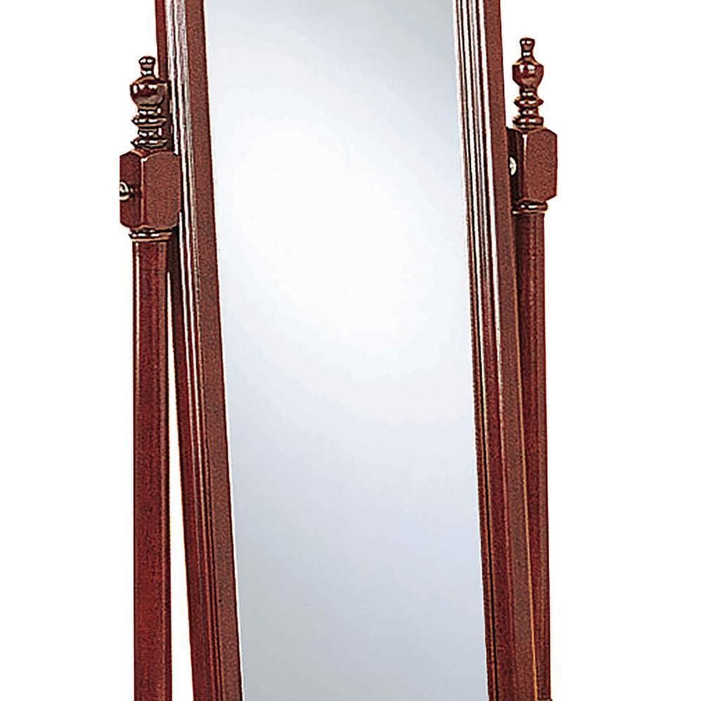 Enhance your home decor with this beautiful brown cheval style full length mirror is crafted with a wood frame, stylish, elegant, and durable. The rectangular mirror with an arched top has a freestanding design that swings the mirror between turned posts for full body reflection.