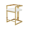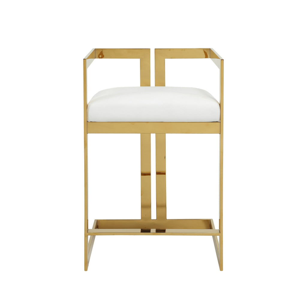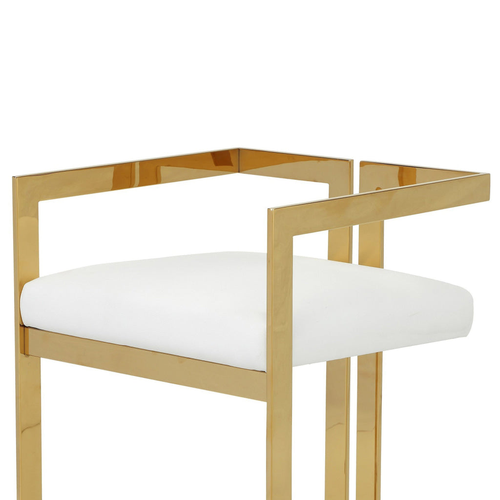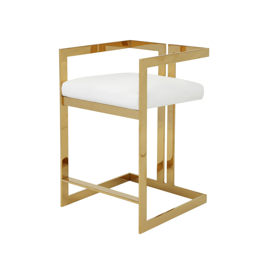 Suki 26 Inch Counter Height Chair, White Faux Leather, Gold Cantilever Base By Casagear Home