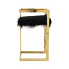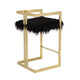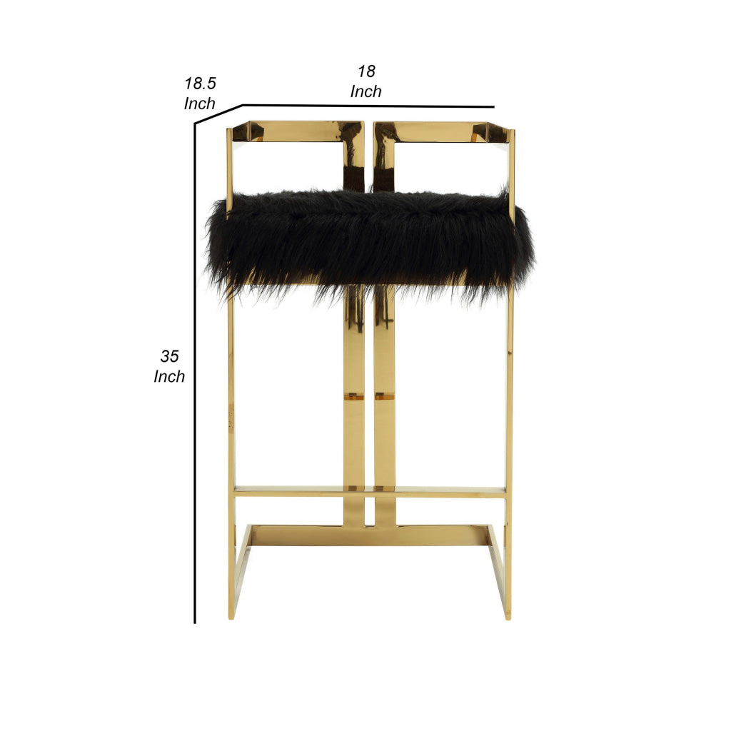 Suki 30 Inch Barstool Chair, Black Faux Fur Seat, Gold Cantilever Base By Casagear Home