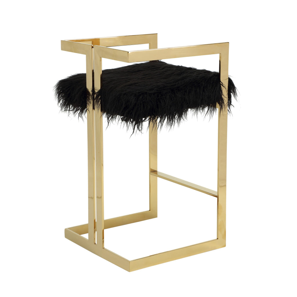 Introducing our luxurious Suki barstool chair, meticulously crafted to bring opulent comfort and contemporary style to your bar height tabletop. Adorned with smooth black faux fur upholstery, its comfortable square-shaped seat ensures hours of enjoyment, while the double frame open back adds a modern touch to its design. Check out our Suki collection for more color options.