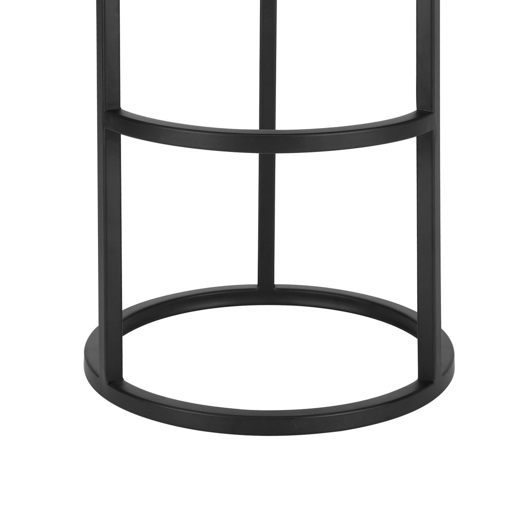 Introducing our Tane stylish barstool, a perfect fusion of modern design and comfort. Crafted with a durable metal frame, this stool ensures stability and longevity while exuding contemporary charm. The round padded seat, upholstered in luxurious black faux leather, offers a plush and inviting feel for extended seating. Check out our Tane collection for more color options.