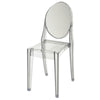Elevate your dining experience with this set of four dining side chairs, designed to seamlessly combine style and comfort. Crafted from durable polycarbonate in a sleek clear finish, they offer modern sophistication with long-lasting durability. The round open-back style adds a casual and inviting atmosphere any dining space. Check out our Temmy collection for more color options.