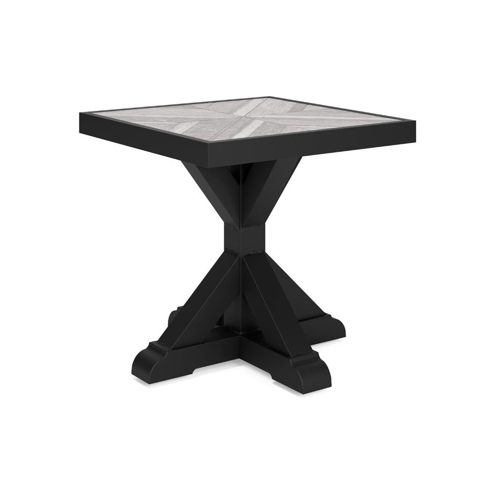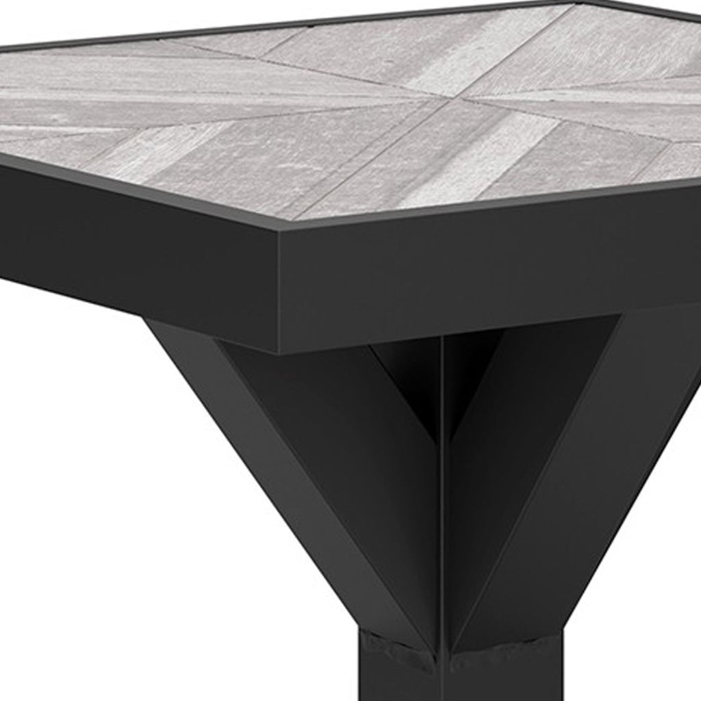 Description:Our Tira side end table epitomizes durability and sophistication, crafted from all-weather-resistant aluminum with a black and dark gray finish. Its sturdy construction ensures resilience against outdoor elements, making it an ideal addition to any patio area. With a stunning chevron design, the thick porcelain top adds a touch of elegance and modern flair. Check out our Tira collection for more.