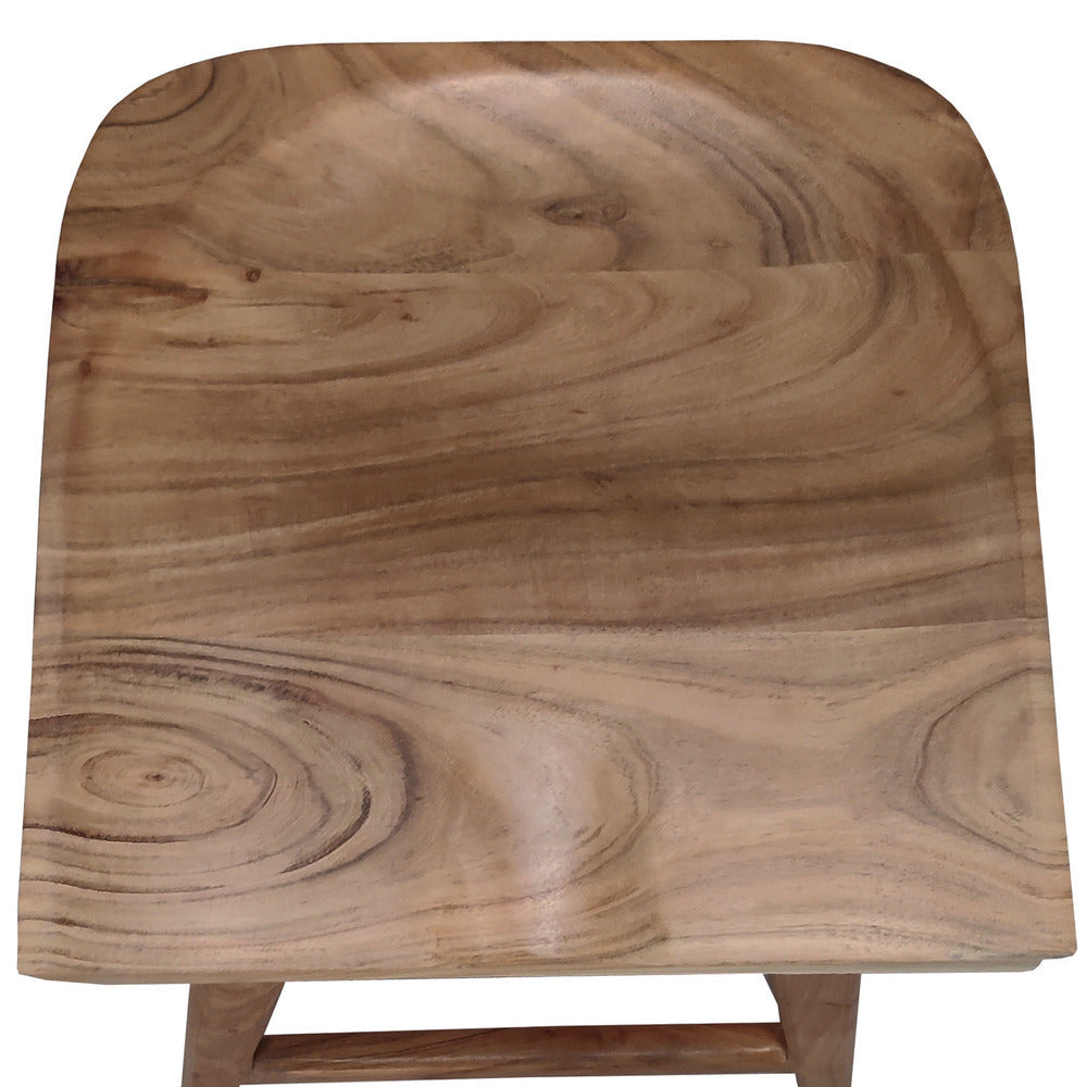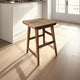 Naturalistic and elegantly designed, our Tisa handcrafted counter height stool lends a strong rustic aura and a touch of industrial aesthetics to any home. Handcrafted from premium grade acacia wood for lasting durability, this piece includes an ergonomic natural brown saddle seat for deep, sturdy comfort; its sturdy tapered legs offer excellent strength and a strong spacer footrest. It has floor protectors along the bottom that prevent damaging scratches or abrasions along the floor while keeping the stool stationary. The backless design adds a subtle touch to your home decor, while also offering effortless space saving and organization. Check out our Tisa collection for more sizes and matching pieces.